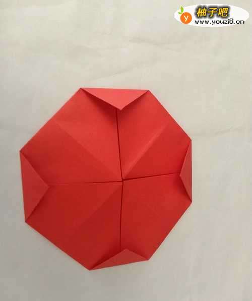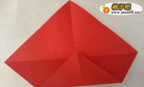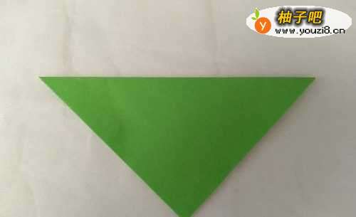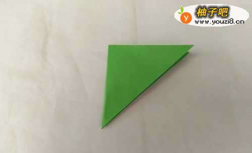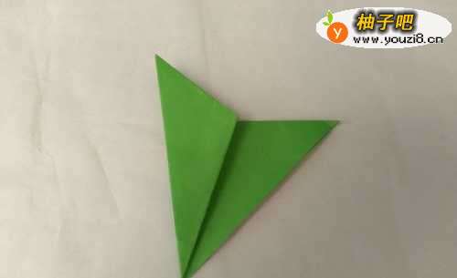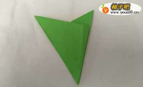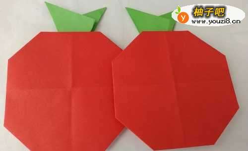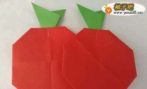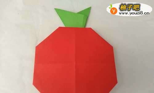 5翻转过来,苹果折好了。准备折叶子。