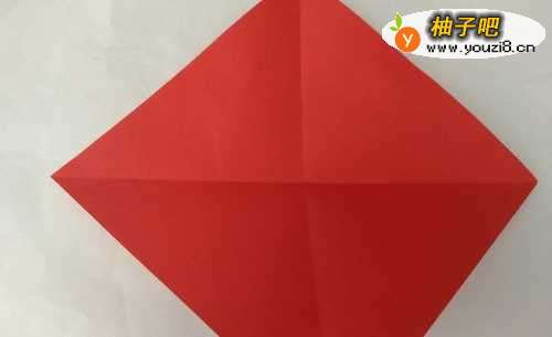 2先做苹果,对角线折出折痕。