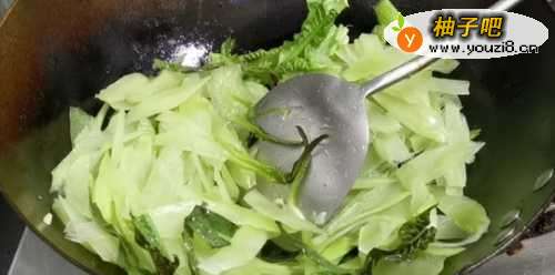 5炒软后加盐翻炒均匀。