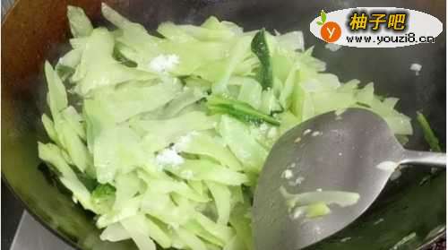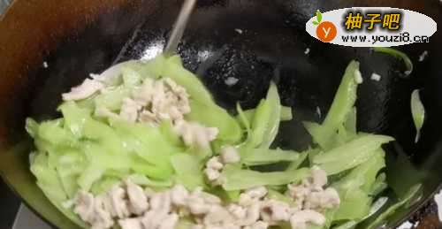 4锅底留油接着炒莴笋。