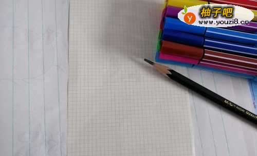 首先,我们准备好格子纸,水彩笔,铅笔备用。