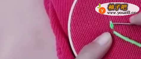 2从针眼穿过如图所示,从第二次穿上来的针眼下针,形成的针法如图所示,向前走一针,由背部到正面穿出,再次从第一个针眼中平穿。