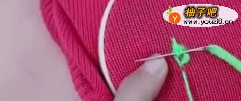 3这个时候注意,线不要拉紧,回到原来的位置下针,此时也不要拉紧,再往前走一针,穿出,重复第八个步骤,此时针在第二个针眼中,将针平穿而过,以此类推,就形成了一条具有立体感的横。