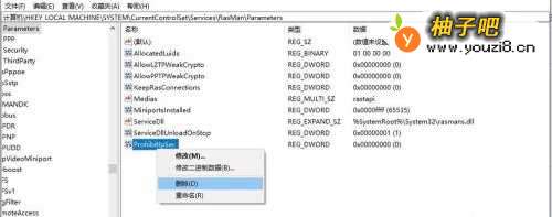 3找到ProhibitIpSec,并删除,然后重启电脑即可。