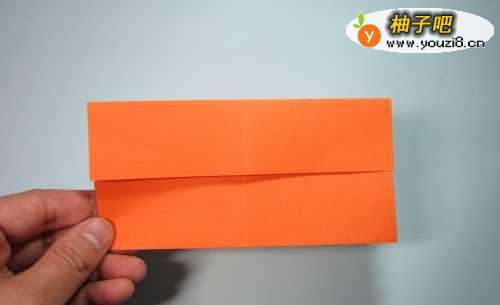 2第2步、将纸张的上下两条边分别折向中间折痕,对齐。