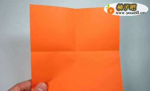 第1步、首先准备一张正方形纸,将纸张的四条边分别两两对折,然后展开,留下折痕。