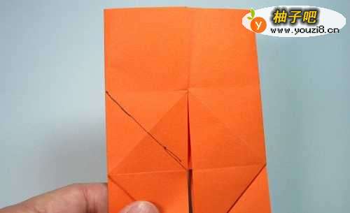 14第14步、按照上一步的操作一直将其折到中间位置,形成这个图形。