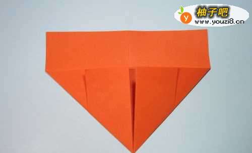 11第11步、将上部的一条边折向中间的边,形成新的一条边,再将新的这条边也折向中间的边,然后展开。