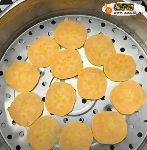 红薯去皮切成片,上锅蒸熟。见下图