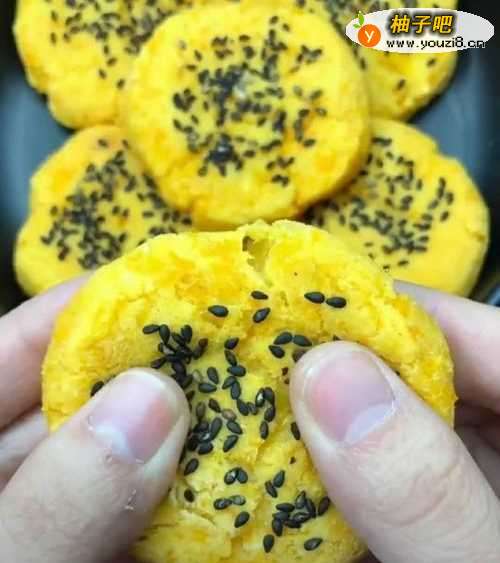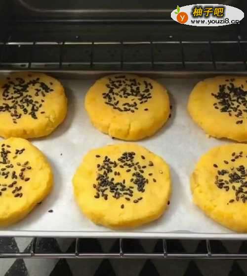5压成饼,撒上黑芝麻。见下图
