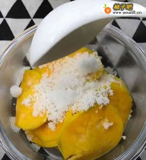 2加一勺白糖压成泥。见下图