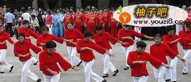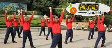 手杖操:有8个动作,简单好学。手杖操在锻炼过程中要配合手、脚、头的动作和眼神,能调动全身的各个关节。