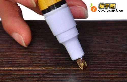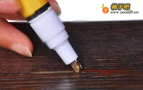 先到网上或者实体店里购买地板修复笔(注意与自己家复合地板的颜色匹配)。