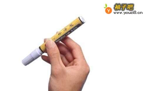4一边轻按压笔头,一边用笔尖涂到损伤处。