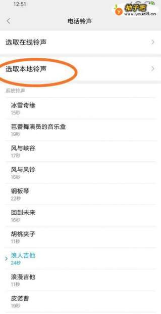 5选择第二栏“选取本地铃声”