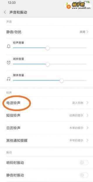 4找到“电话铃声”。