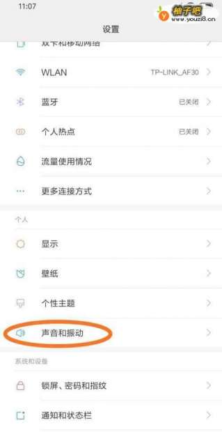 3找到下方的“声音和振动”。