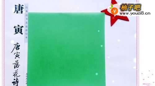 准备一张正方形单面彩色纸。也就是说一面是彩色的,一面是白色的。因为今天我们要折的是大白萝卜。