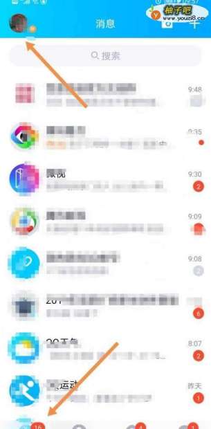打开手机,登录QQ,先点击左下角消息,再点击左上角我的头像。