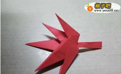 再把夹在中间的角折上去,同样和前两个角错开一些。