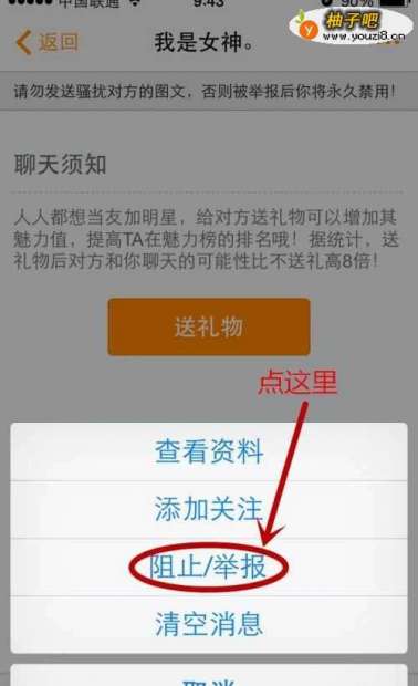 5选择“阻止/举报“,然后这个人就被你拉黑了,TA就无法再骚扰你