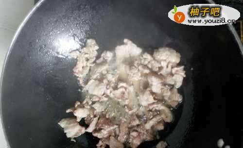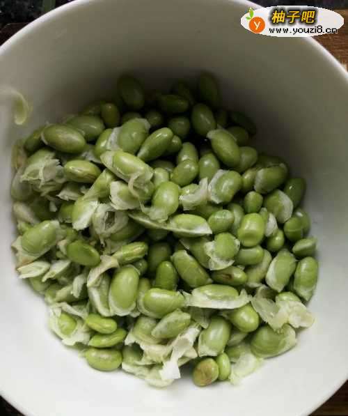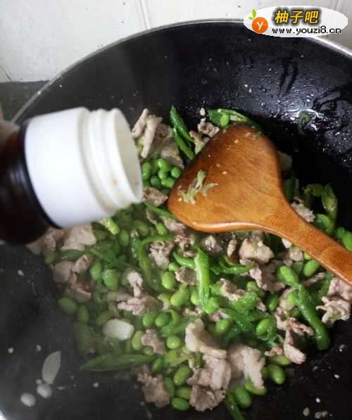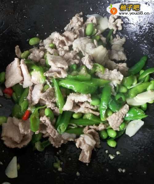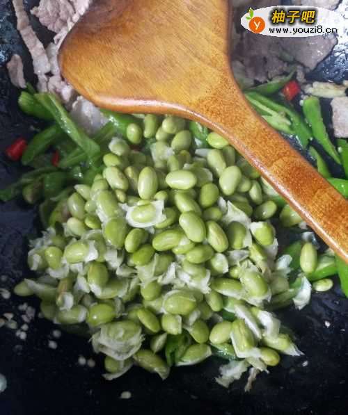 毛豆剥好洗净备用,猪肉洗净切片入锅去掉水分