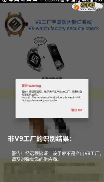 经远程验证,该手表不是产自V9工厂,请及时弹劾您的供应商。