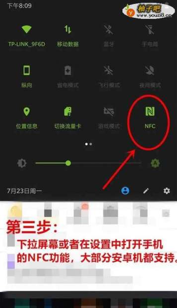 4在手机设置中或者在下拉菜单中打开NFC功能。