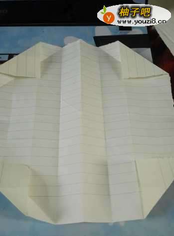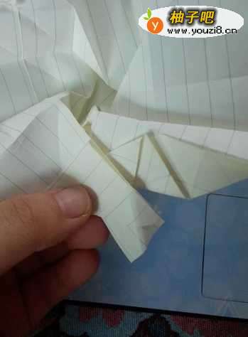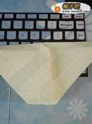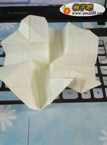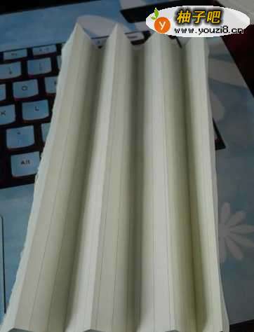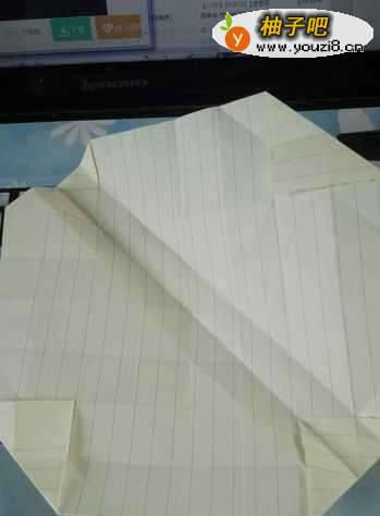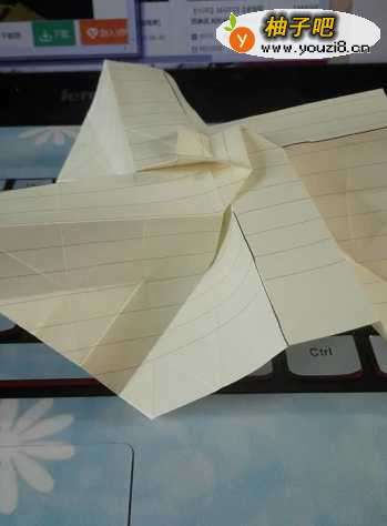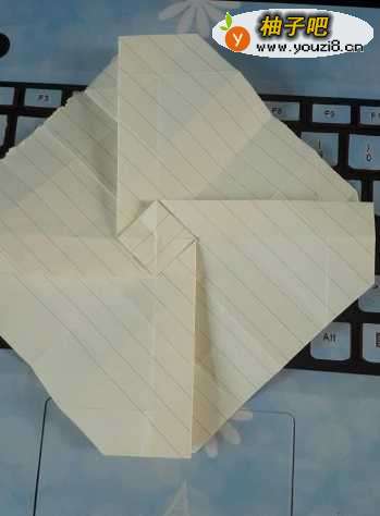 6将纸张压平,把上面的一边翻下来,再将后面的纸张翻开成下图。