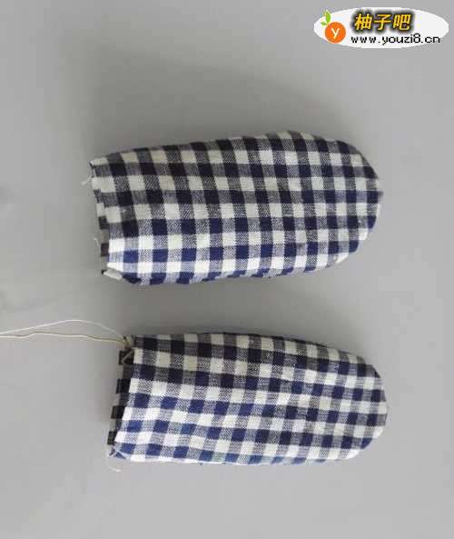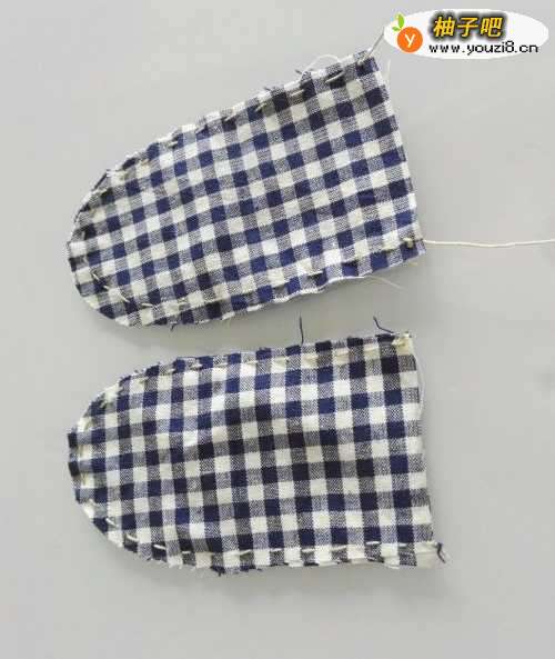 4将耳朵两两叠放在一起,分别缝合起来,短边的直线边不用缝~要留作反口的~