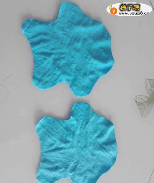 2根据剪下来的纸样,用蓝色的布剪出两片身体部分~