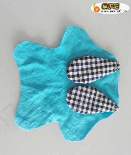 7将两片耳朵疏缝在一片主体的布片上,注意,这时候耳朵的方向一定是要朝内,否则做出来会很悲催~