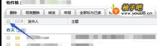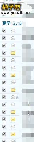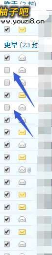 3单击后效果如图所示,收件箱里所有的邮件最前方的选框被勾选。