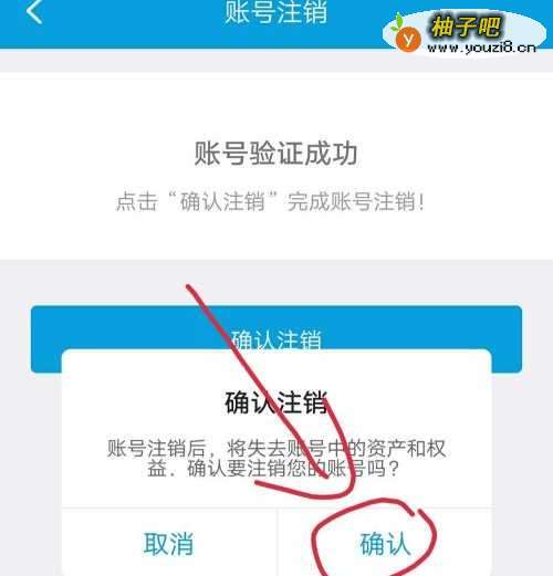 5如果满足上一步的条件会进入如图所示的验证成功界面的,点击确认注销按钮