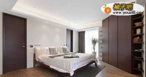 4因为房形的问题,主卧床原先是靠在斜面上的弧形床头与圆床,不但浪费了大量的空间,也无法更换床型,更改了入门位置后,就让空间得到了最大限度的利用。棕色纯实木品牌地板,颜色古朴深邃,脚感厚实温润,居住舒适度达到最佳。