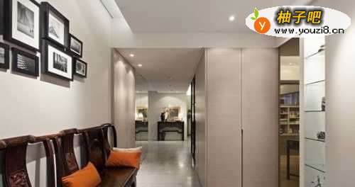 从玄关到客厅,不同的地面材料自然划分出多样功能区域,视野所及的水平面与立面质感似乎也跟着扩充,焕然一新的空间使原本的旧家具成为视觉焦点,应和着黑白照片墙,糅杂出中西合并的和谐气氛。