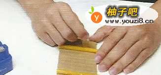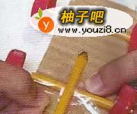 5把竹签穿过吸管,并把竹签剪成比吸管两端分别长出1厘米的高度。