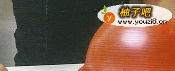 10对着吸管吹气,把气球吹大,捏住吸管的一端。