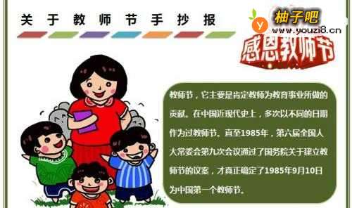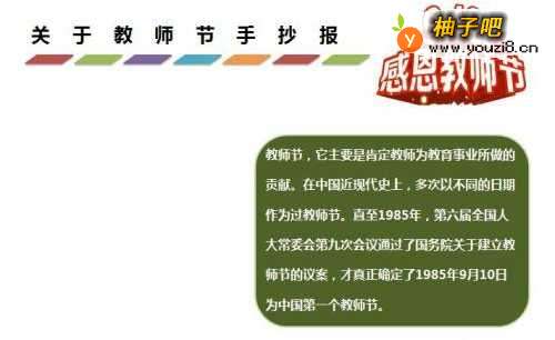 4在【关于教师节手抄报】标题的下方右侧处,在框内写上字,如下图所示。