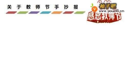 首先,用彩笔在白纸上,画出含有立体感小长方形框架并涂上颜色,在白纸的顶部靠左写上字:【关于教师节手抄报】的标题,如下图所示。