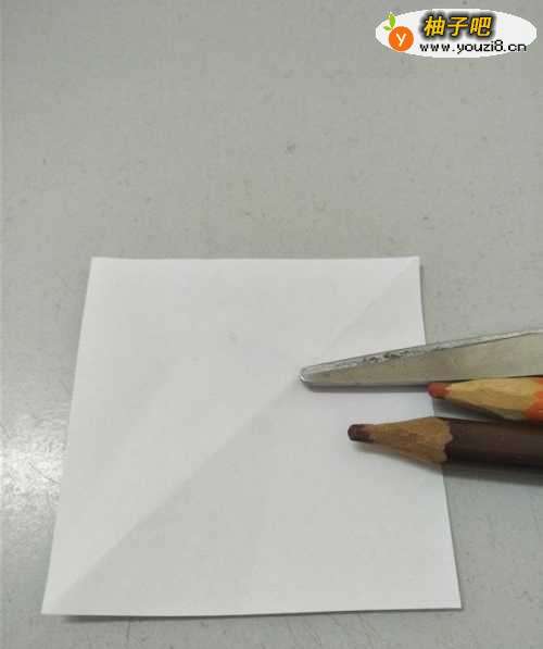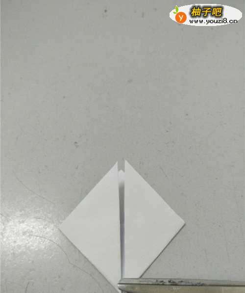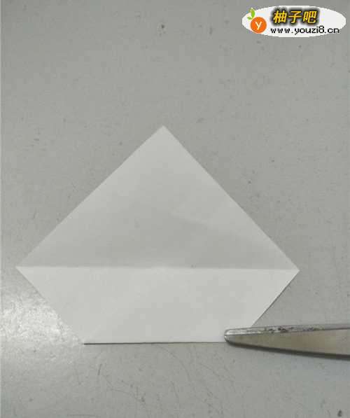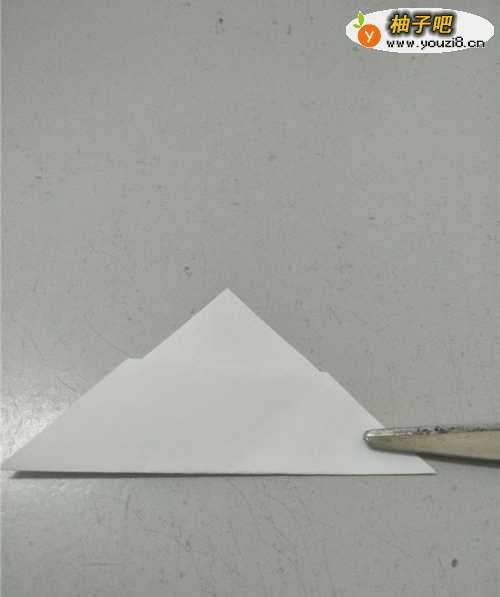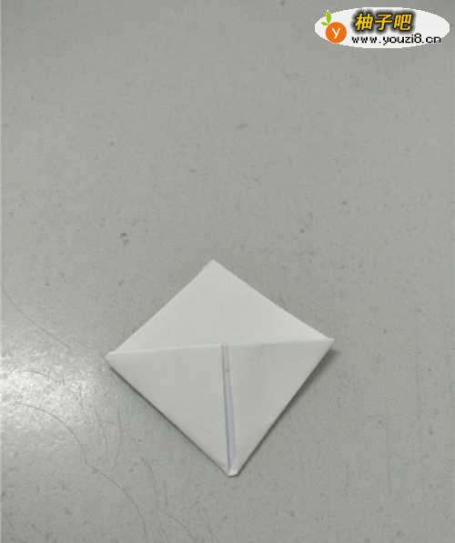 5将三角形左右两个角向上对折,折成一个小正方形。