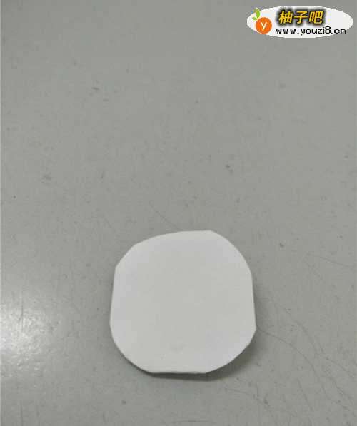 7将纸反过来,用剪刀将正方形的四个角剪掉,剪成一个圆形。