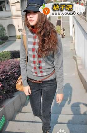 5 05 橙色,浅灰色,灰白色,三种颜色的一寸方格有序交错,让原本单调的灰色毛衣趣味无穷。橙色高领,传递出丝丝暖意,给冰雪交加的寒冬一份破冰之暖。肩部纽扣装饰的肩章设计,为毛线的柔弱增添一份帅气。