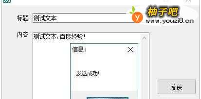 下面输入标题+内容之后, 点发送, 然后 会弹出信息框.