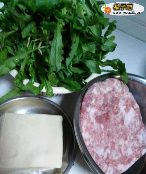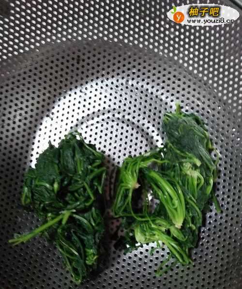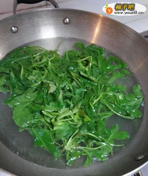 2做馅:锅内放入清水烧开,另外准备一个干净容器放好净水,然后把荠菜放入锅中烫熟后,马上用漏勺撩起放到准备好的净水容器中,冷却后把水分沥干