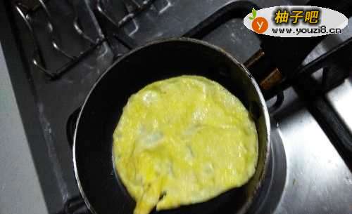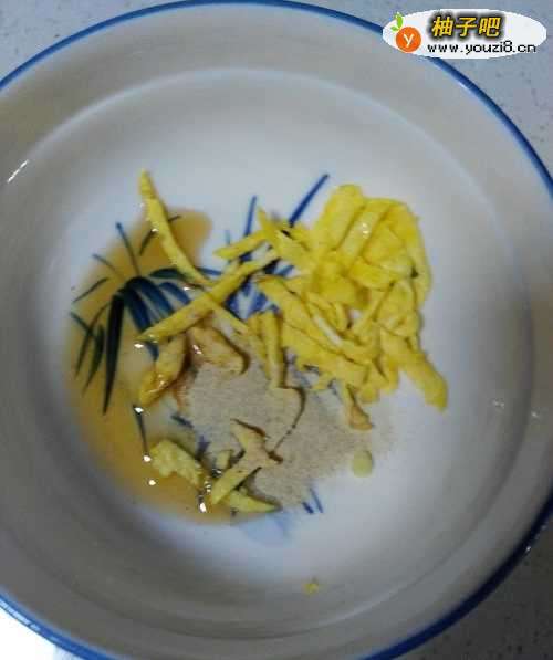 7准备汤料:先把刚才使用蛋清剩下的鸡蛋摊成蛋皮后切成丝
