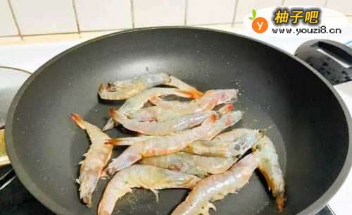 5倒入虾子,加盐、胡椒粉翻炒,炒至虾子全变红色即可起锅