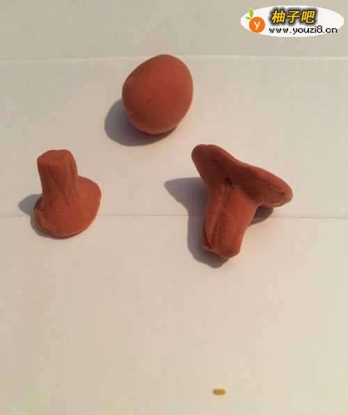 4第四步 做完这两个南瓜 再做两个南瓜的枝梗 给两个南瓜安上