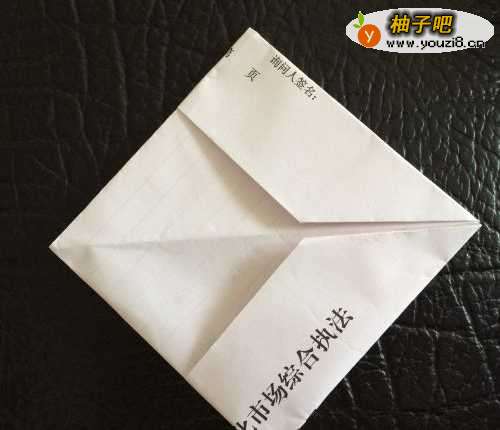 9然后将形成的正方形的两个可活动的角向两边轻轻拉开,就可以变成一只小纸船啦!