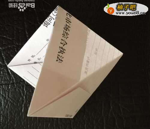 2下面长方形部分的四个小角对称折起来,其中正面的两个向上折,背面的两个向后折